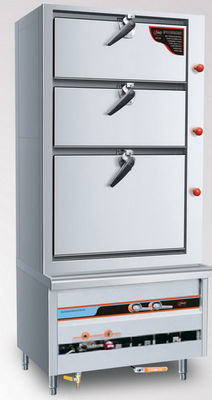 Self - Priming Gas Seafood Steamer / Three Doors #304 Stainless Steel Food Steam Cabinet